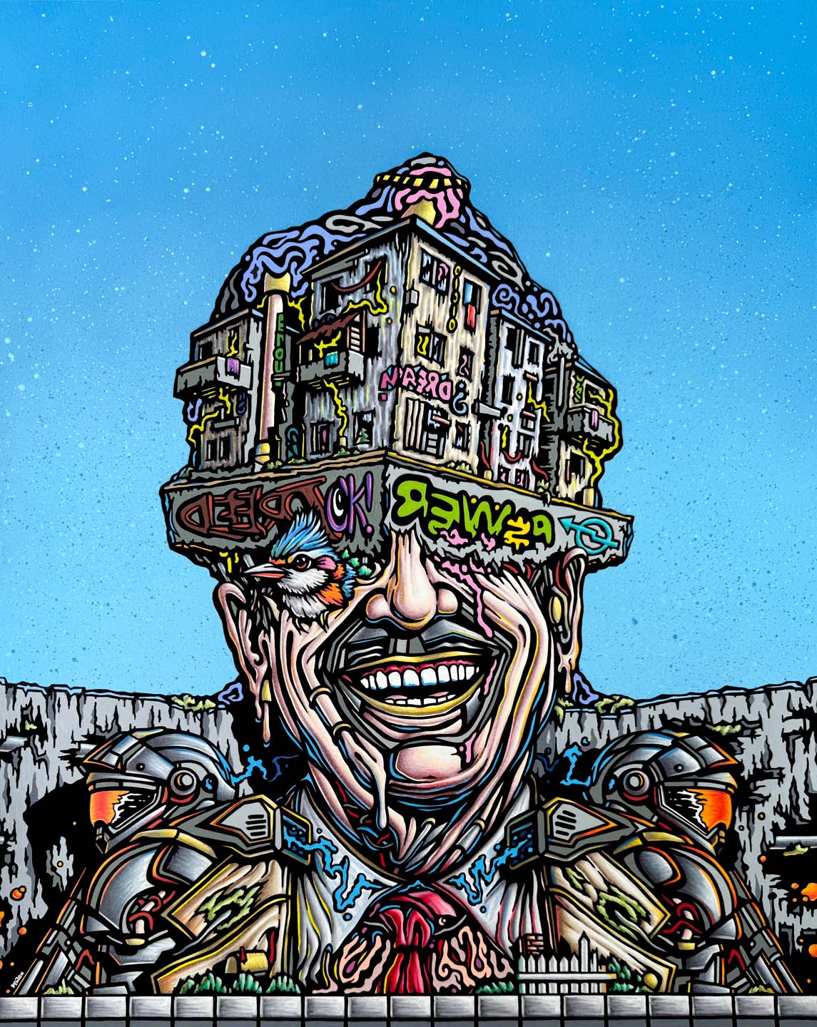 "HOW THE EMPIRE FALLS" - Spray Paint, Colored Pencil, Acrylic, and Ink on Archival Paper - 17 x 14 in.