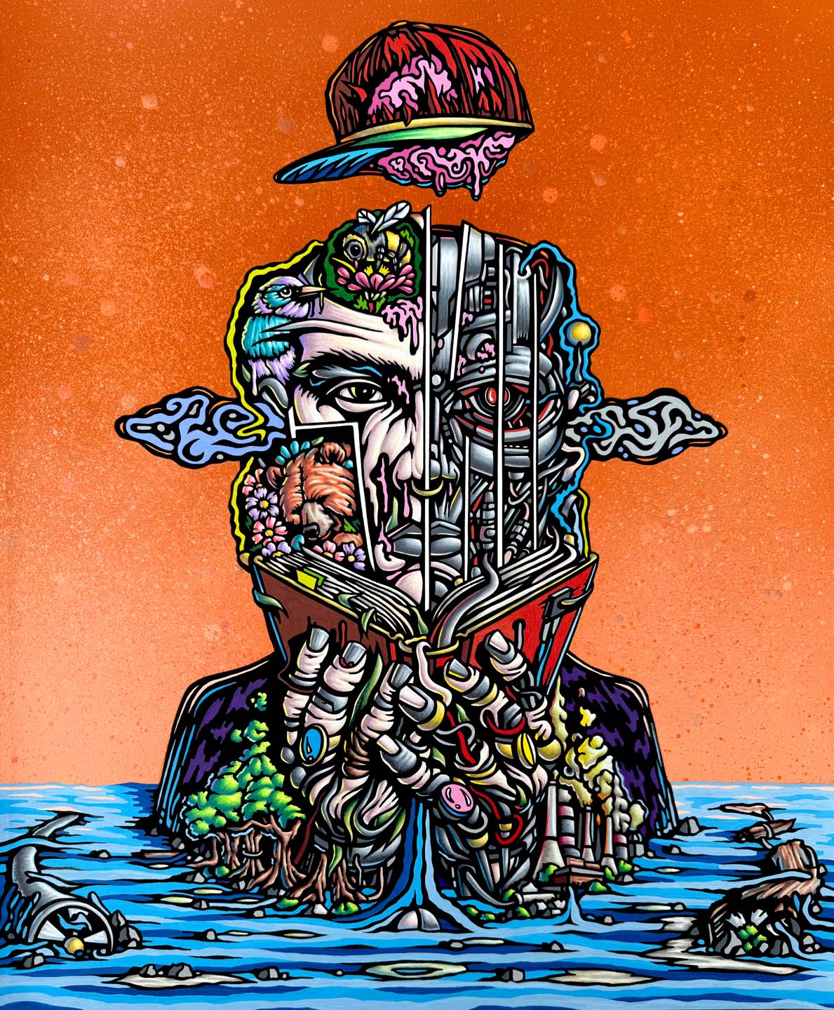 "The Confluence" - Spray Paint, Colored Pencil, Acrylic, and Ink on Archival Paper - 29 x 24 in. Framed